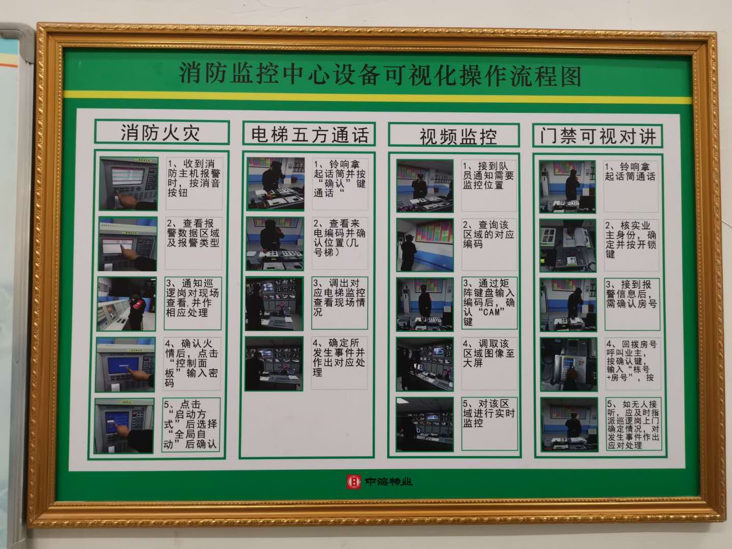 正所谓无规矩不成方圆,而为了让最基层岗位的同事能够熟知本岗位最重要的工作内容,中海将各类流程图表化,直接于固定位置上墙。不同于枯燥的岗位指引,流程图将每个节点用图文方式介绍出来,将虚无的概念形成跳跃的图像,如电影一般直接在脑海中推演,配合各类培训、考核,将岗位知识牢牢烙印在脑海中。